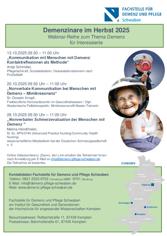 | Veranstalter | Fachstelle für Demenz und Pflege Schwaben |